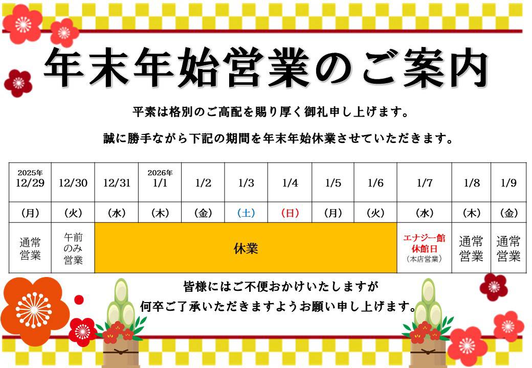 お知らせ年末年始休業のご案内