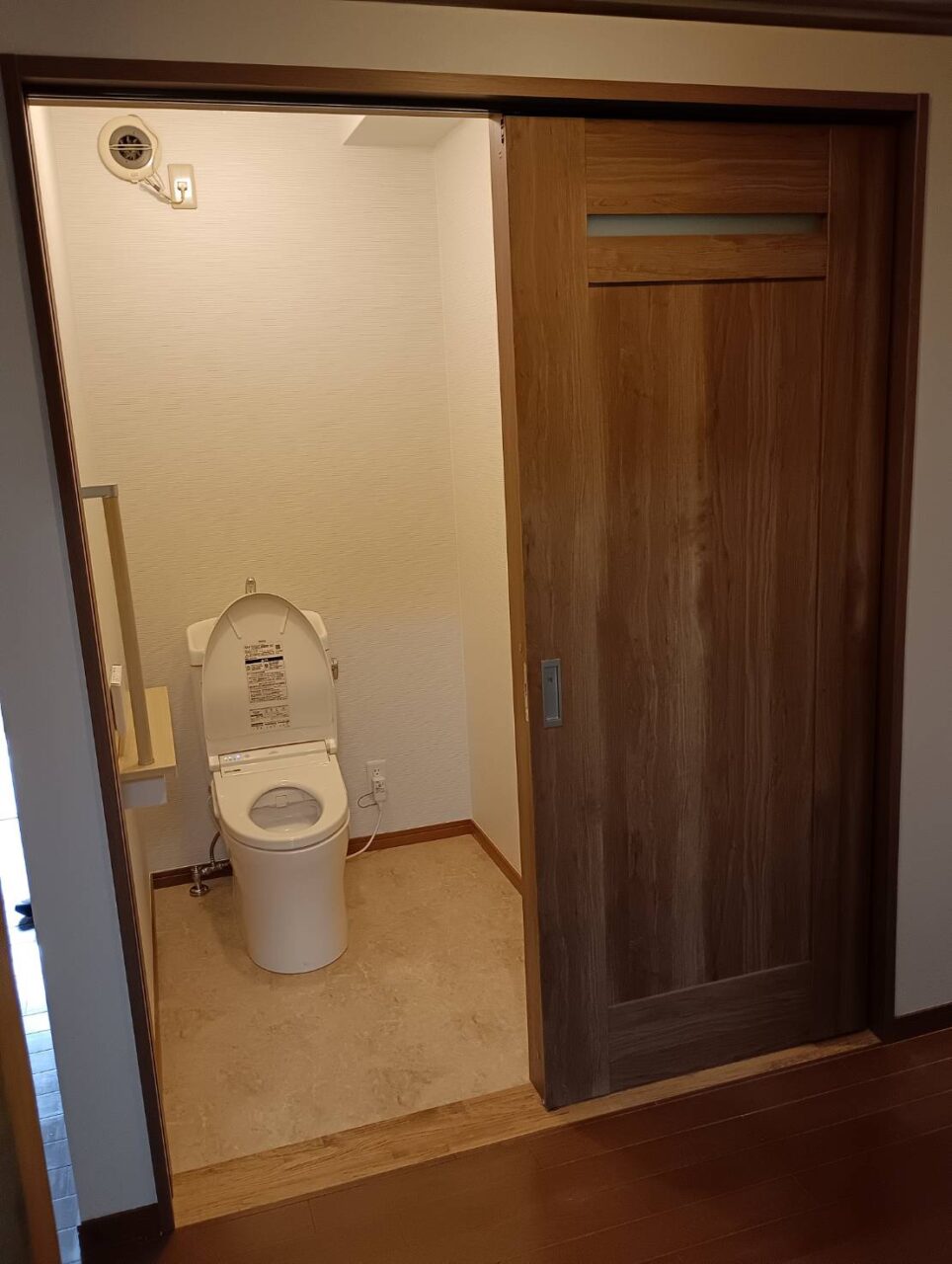 築30年以上の戸建て・小牧市H様邸で、トイレの出入口を広げ、建具を含めたバリアフリー化を行いました。